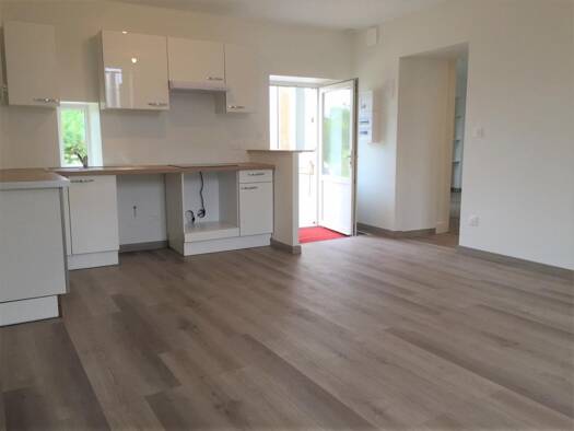 Dans maison composée de 2 habitations, Appartement au 1er étage comprenant une cuisine semi ouverte sur grande piéce de vie, deux chambres, un bureau , une salle de douche / wc. Une place de parking ...