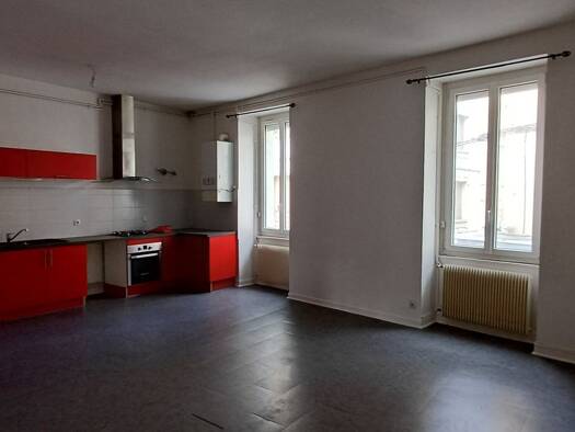A louer plein centre ville de Firminy proche place du marché, appartement f3 au 2°étage sans ascenseur. Entièrement rénové, il se compose d une pièce de vie de 38m² salon ouvert sur cuisine aménagée ...
