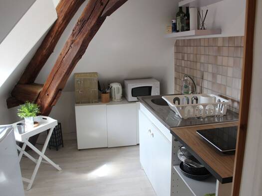 AUXERRE, proche centre ville, bel appartement meublé offrant entrée, pièce à vivre, cuisine ouverte, salle de bains, toilette. Très lumineux. Stationnement facile