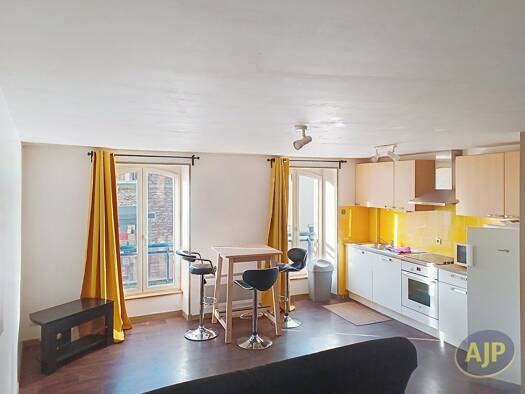 CENTRE VILLE/ Agréable Appartement de type 2 comprenant: Entrée avec placard, séjour avec cuisine américaine aménagée et équipée, chambre, salle de bains avec wc Chauffage électrique. Libre le 15.04....