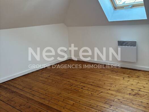 Vannes - Le Fourchêne. APPARTEMENT T2 MEUBLÉ entièrement rénové (surface au sol 25,90m²), au 2ème et dernier étage d'une maison en colocation. Il comprend une pièce de vie avec kitchenette, une chamb...