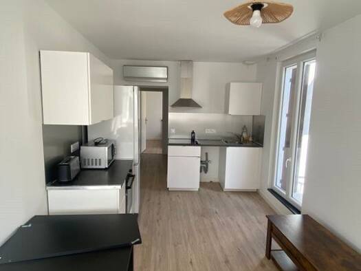 Magalas proche centre au 1er étage d'une maison de village appartement T.3 entièrement rénové très lumineux grande cuisine aménagée et un séjour séparé - deux belles chambres dont une avec un grand p...