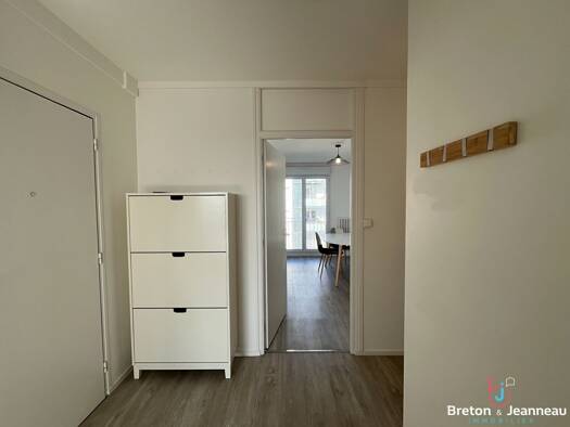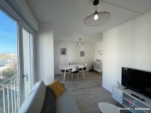 BRETON ET JEANNEAU IMMOBILIER vous propose : Un appartement meublé comprenant : hall d'entrée, salon séjour, cuisine aménagée et équipée (four, plaque, hotte, réfrigérateur, lave-vaisselle, micro-ond...