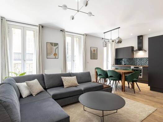 Type 5 meublé entièrement rénové avec quatre belles chambres – Marseille 6ème Ce spacieux type 5 meublé de 97m2 refait à neuf se compose d'un salon séjour avec cuisine ouverte entièrement équipée (pl...
