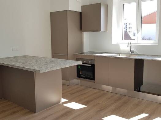 .. Thonon, à quelques minutes de la gare: Résidence neuve, sans frais d'agence. 63.48m2T3 avec 1 stationnement. Deux chambres, séjour avec cuisine ouverte meublée et équipée de plaques et hotte.