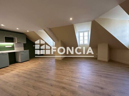VICHY T2 mansardé et traversant de 35 m² habitable et 50 m² au sol, au 3ème étage d’un petit immeuble calme. Il se compose d’une cuisine aménagée et équipée ouverte sur le séjour, d’une grande chambr...