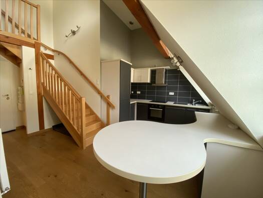 Dans le secteur prisé de Saint-Ferjeux, joli T1 bis en duplex dans maison comprenant une cuisine équipée et aménagée, une pièce à vivre en demi niveau inférieur, une chambre en mezzanine, salle de ba...