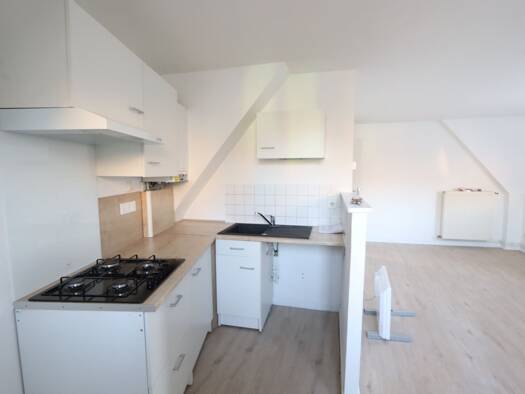 Petit appartement mansardé, 2 pièces, au 3ème étage sans ascenseur, dans un petit immeuble proche centre ville, comprenant un petit séjour avec coin cuisine, une chambre, une salle d'eau, WC. Chauffa...