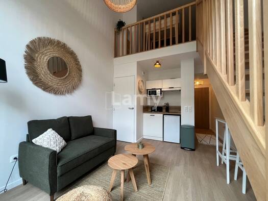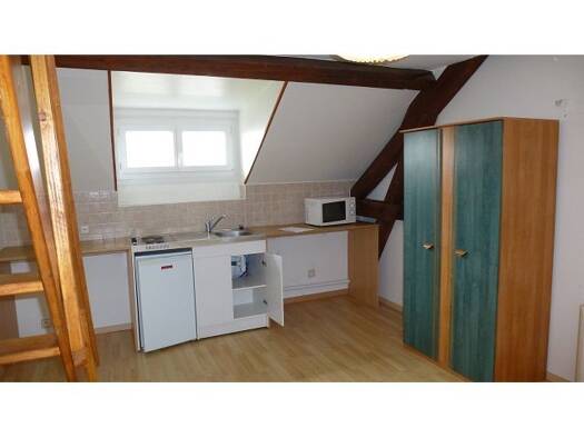 Rue du Barbâtre - Meublé Un appartement meublé de deux pièces situé au 1er étage, comprenant une entrée avec rangement, un séjour avec cuisine, une chambre avec placards en mezzanine, une salle de do...