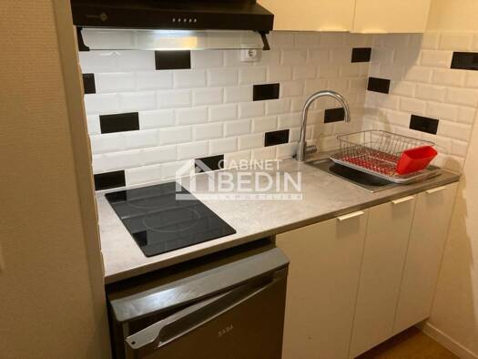 PESSAC . Beau studio meublé au 1er étage comprenant: pièce principale, espace cuisine aménagée et équipée, salle de douche avec wc. Emplacement de stationnement privatif. Contact : / oleau@cabinet-be...