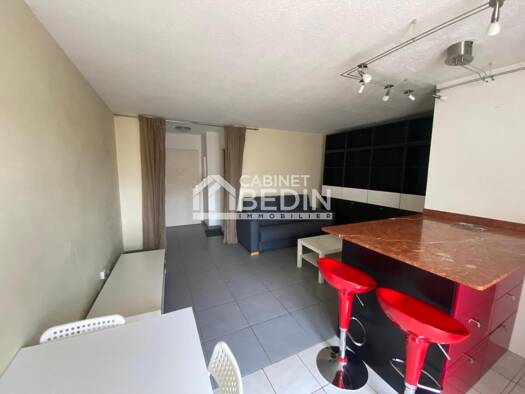 Exclusivité CABINET BEDIN - BLAGNAC. Appartement de type 1 meublé en très bon état, au 3ème étage d'un immeuble sécurisé avec une pièce de vie ouverte sur cuisine américaine intégralement équipée, un...