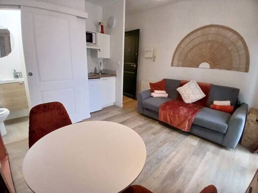 Agréable studio comprenant une pièce principale avec coin cuisine équipé, une table ainsi qu'un canapé clic-clac. Le logement dispose également d'une salle de bain avec WC. Vous pourrez profiter d'un...