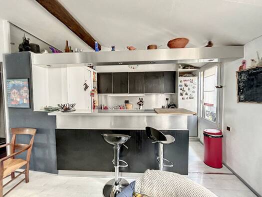 A deux pas du Castillet, au deuxième étage d'un petit immeuble Venez découvrir cet appartement rénové de deux pièces en duplex Il est composé d'une cuisine ouverte sur un séjour, une chambre avec pla...