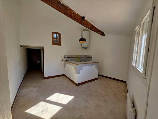 Au centre du village, grand appartement T2 d'environ 58m² au 2ème et dernier étage comprenant : un séjour, une cuisine indépendante aménagée, une grande chambre, une salle de bains, un wc indépendant...