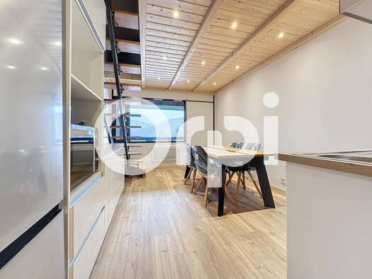 BOGEVE - Au centre du village studio duplex de 27.10m² avec SDB/WC, kitchenette ouverte sur séjour avec loggia et une chambre en mezzanine. Loué meublé avec 1 casier à ski et 1 emplacement de parking...