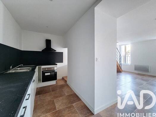 Appartement T3 en duplex à SALLELES D'AUDE : en rez-de-chaussée, coin cuisine ouvert (rangements, hotte aspirante) sur une charmante pièce à vivre avec cheminée, salle d'eau et WC indépendant. A l'ét...