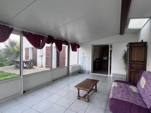 Situé dans une maison, appartement T2 bis en RDC offrant : Une cuisine aménagée et équipée ouverte sur pièce principale, une chambre, un bureau (avec lits superposés) et une salle d'eau : WC. Véranda...