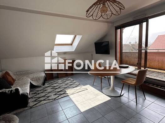 Aix-les-Bains centre, à proximité immédiate des commodités, au 1er étage d’une copropriété sans ascenseur, studio meublé de 28,67 m² composé d’une cuisine aménagée ouverte sur une grande pièce de vie...
