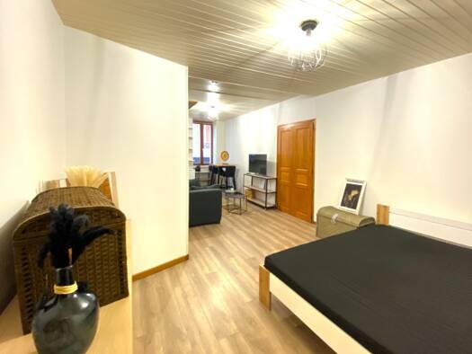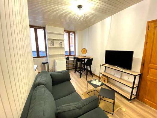 Un apartement meublé de type 2Bis, comprenant une entrée, un séjour/cuisine, une chambre, un bureau, une salle de bain et un WC. Cet appartement possède une cave