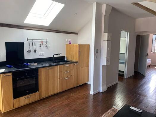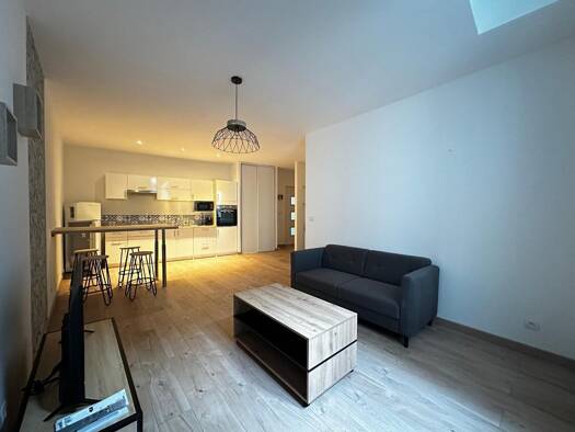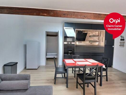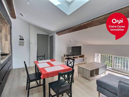 Au centre de Castres, appartement T1 bis meublé de 55m² comprenant une cuisine ouverte et équipée donnant sur un grand séjour et un WC séparé avec machine à laver. Au 1er étage, on retrouve une mezza...
