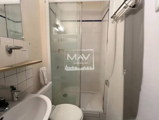 Au premier étage d'un petit immeuble situé dans la cour de l'Etude Notariale, Studio en bon état de 13m², séjour linoléum avec kitchenette équipée, salle de douche avec WC, chauffage électrique et ea...