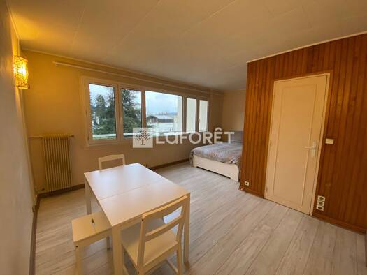 Appartement meublé de type Grand F1 en rez de chaussée, 40 m² habitables, petit jardin, comprenant : entrée/salon, cuisine avec coin repas, salle d'eau, wc et cave. Place de parking extérieur. Proche...