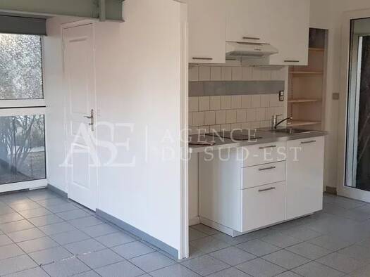 LA FARE LES OLIVIERS, au rez-de-chaussée d'une petite résidence sécurisée, bel appartement T1 comprenant un séjour ouvert sur une cuisine aménagée et équipée (hotte, plaque de cuisson), une salle d'e...