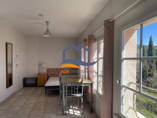 Eguilles studio meublé 19 m² Studio meublé situé au 1er étage d'une propriété à Eguilles, comprenant 1 pièce principale avec coin cuisine, salle d'eau, wc, calme, expo sud donnant sur jardin, 1 place...