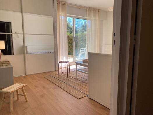 A 2 pas de l'église de Caudéran , et proche transports en commun, adorable studio meublé refait à neuf situé au rdc comprenant une entrée, un séjour extrêmement lumineux ouvert sur une très belle ter...