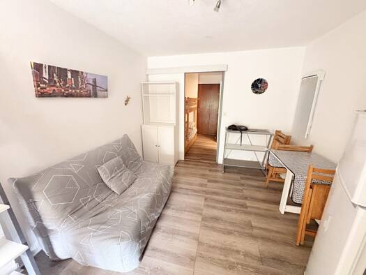 L'Agence Espadon vous propose de découvrir ce studio-cabine disponible de octobre à juin ! Le logement se compose d'une entrée avec coin nuit. L'appartement dispose d'une kitchenette et d'un séjour l...