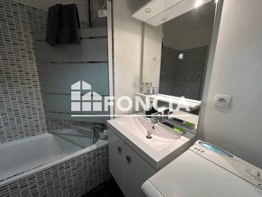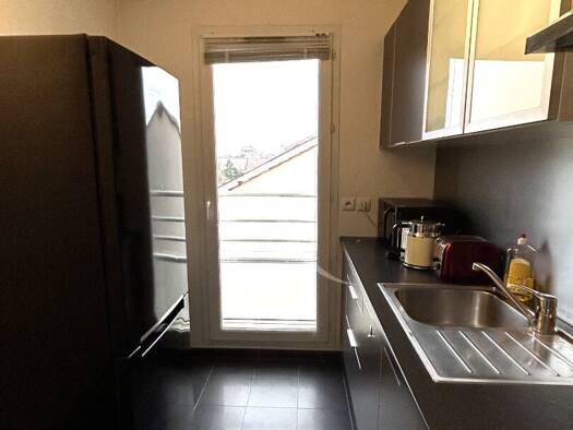 F2 meublé à Bussy-Saint-Georges comprenant: entrée, séjour avec kitchenette, une chambre, dégagement avec rangement, cellier, salle de bains, wc séparé et balcon. Deux places de parking complettent c...