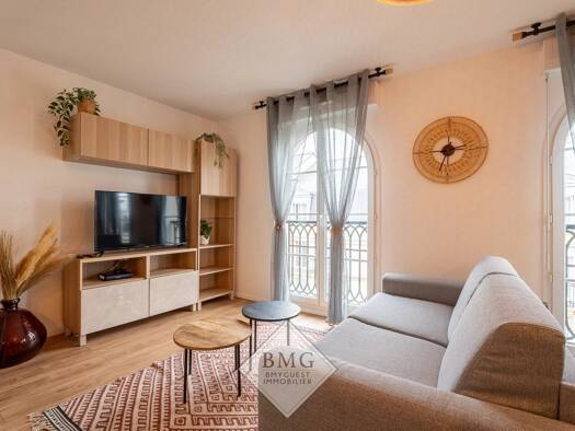 Très bien situé au calme, un bel appartement entièrement meublé et composé d'une entrée, un séjour avec une cuisine équipée, une chambre, salle de bains, wc séparé.Nombreux rangementsUn parking en so...
