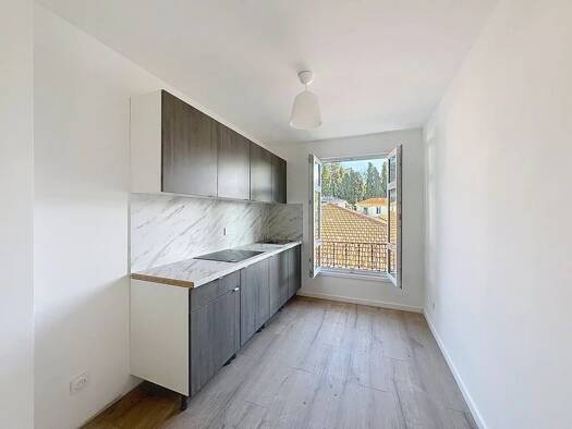 Situé au 3ème étage d'un immeuble proche de toutes commodités, superbe appartement 2 pièces fraichement rénové, loué vide, composé de : une entrée avec placard, une pièce à vivre, une cuisine semi éq...