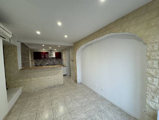 Appartement en plein bourg en duplex d'environ 55 m². rez-de-chaussée cuisine ouverte non-équipée sur pièce a vivre, salle d'eau avec WC et à l'étage 2 chambres en enfilade. Chauffage pompe a chaleur...
