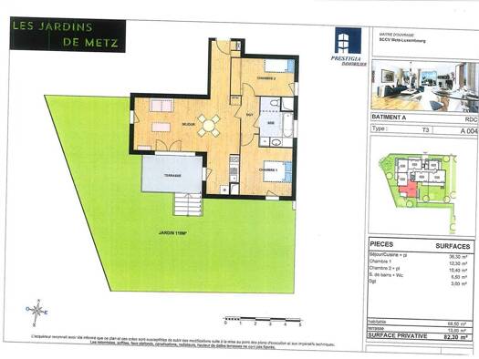 Secteur calme et desservi par les lignes METTIS, dans belle résidence neuve, joli appartement neuf au RDC avec terrasse (n°B005) comprenant une entrée avec placard, un coin cuisine aménagé et semi-éq...
