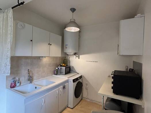 Un appartement de type F2 offrant : une entrée, un séjour spacieux, une cuisine aménagée, une chambre avec placard, une salle d?eau avec WC, ainsi qu?un jardinet. Cave en sous-sol, accessible depuis ...