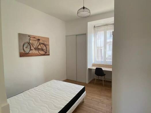 Dans grand appartement de Type 4 meublé et équipé, idéalement situé, au rez de chaussée d'un immeuble, découvrez cette chambre en colocation. La chambre est équipée d'un lit avec matelas et sommier, ...