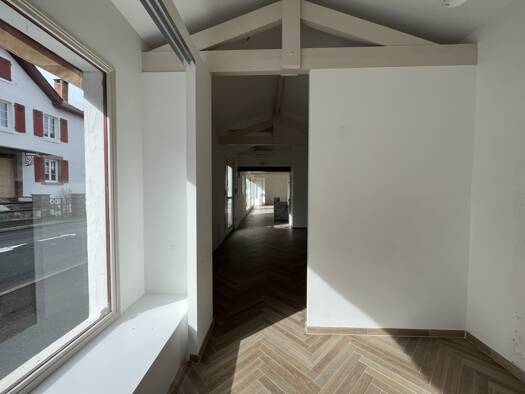 Proche du centre-ville et de la gare de St Jean Pied de Port, spacieux local commercial avec 4 grandes vitrines et 1 fenêtre, et 2 entrées distinctes permettant ainsi de cloisonner le local en 2 part...