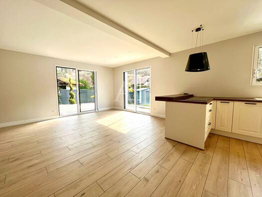 Charmant appartement T4 en duplex situé à l'entrée de Doussard. Cet espace de vie fonctionnel s'ouvre sur un hall d'entrée accueillant qui dessert une cuisine aménagée communiquant directement avec l...