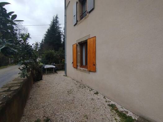 Maison de village mitoyenne à louer avec une surface 101,5 m², idéalement située au calme à 10 min en voiture du centre des Vans. Cette maison offre au 1er étage: un séjour avec poêle à bois, ainsi q...