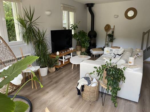 Très jolie longère de 112 m² située aux Bréviaires dans un secteur calme, en lisière de forêt. Belle entrée avec dégagement et espace buanderie, grand séjour, cuisine équipée séparée, wc indépendant....