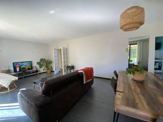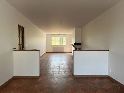 Maison de campagne rénovée à louer, proche d'une école primaire. Surface de 150.24 m² avec un grand séjour lumineux, cuisine aménagée avec coin repas, 3 chambres, salle d'eau, cellier et garage atten...
