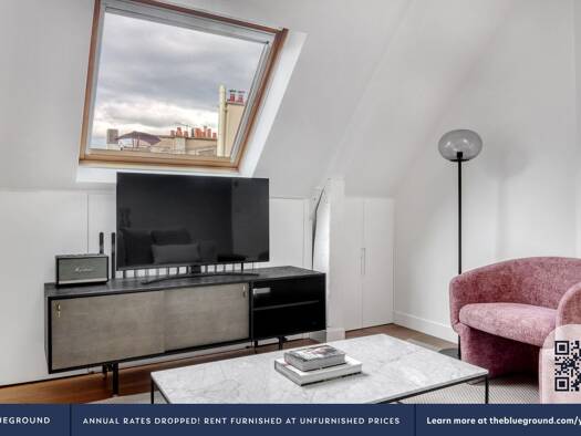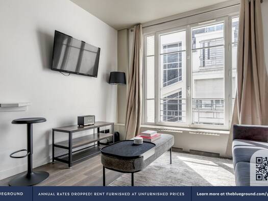 Démarrez votre nouvelle vie à Paris avec ce spacieux appartement Blueground d'une chambre. Vous aimerez rentrer chez vous dans cette maison meublée avec soin, magnifiquement conçue et entièrement équ...