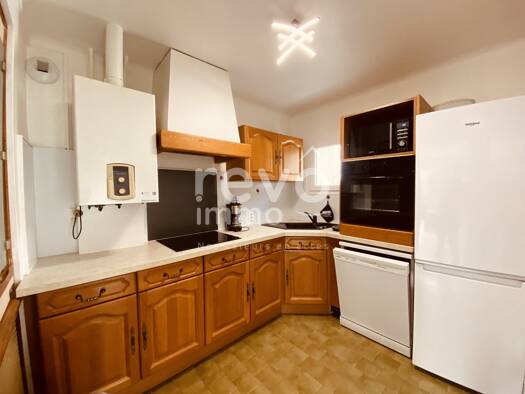 Maison de 90m2, 3 chambres dont une occupée, salle de bain double vasques avec une douche à italienne et toilette pour le 1er étage. Au rdc un coin repas, une cuisine ouverte, toilette et un grand sa...