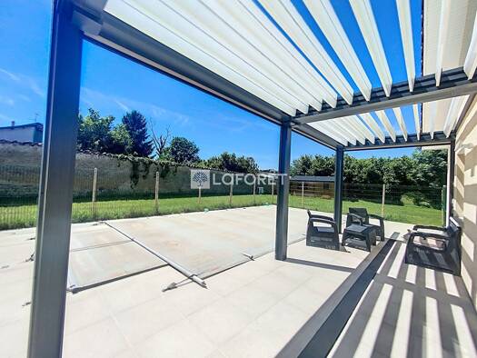 Proche Bourgoin-Jallieu - Belle maison récente peu énergivore (classée B), de plain pied composée d'une vaste pièce de vie lumineuse avec cuisine équipée, le tout ouvrant sur une piscine, de trois ch...