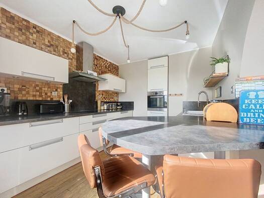 Maison meublée comprenant pièce de vie ouverte sur cuisine aménagée et équipée (plaques de gaz lave vaisselle, four, micro ondes), poêle pellets connecté, WC suspendus, dressing avec chaudière à prod...
