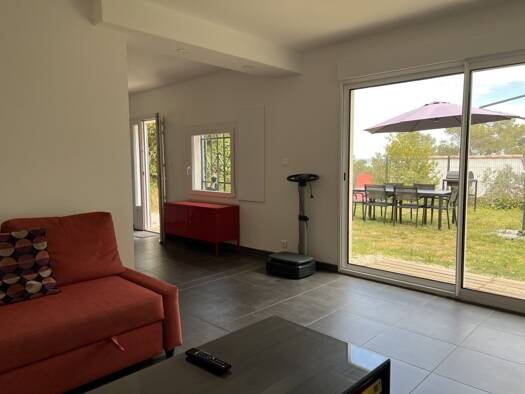 Rez-de-chaussée d'une maison à usage d'habitation meublée de 134 m² environ, de plain-pied, Extérieur aménagé, 2 places de parking avec entrée sur séjour, grande cuisine équipée indépendante, wc sépa...
