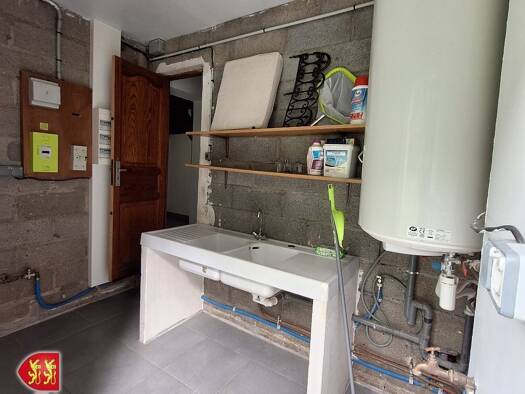 Entrée ,dégagement, WC, cuisine aménagée ,salle de séjour avec cheminée-insert à feu de bois ,avec coin salon Salle d'eau avec douche, et WC. Deux chambres Sous-sol complet avec garage et cave ,greni...