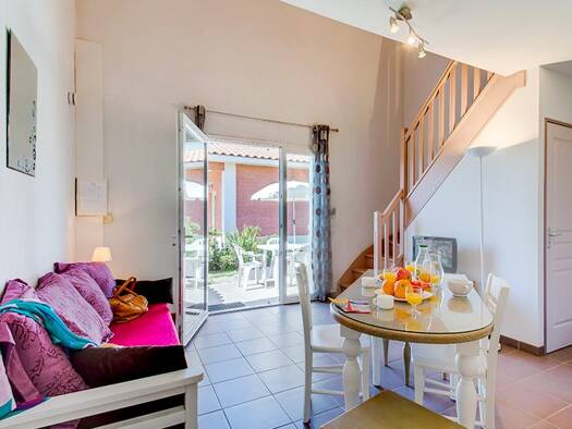 A Saint Nazaire d'Aude, maison de village de type T2 en duplex. Elle se compose d'un rez-de-chaussée avec un séjour avec son coin cuisine aménagée et d'un étage composé d'un dégagement avec placard, ...