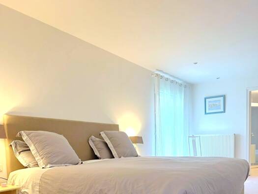 Domaine de la vigne, en plein cœur du golf, sublime maison d'architecte meublée d'une superficie de 250 m². Elle comprend une entrée spacieuse, un double séjour lumineux avec cheminée, vue sur la ter...